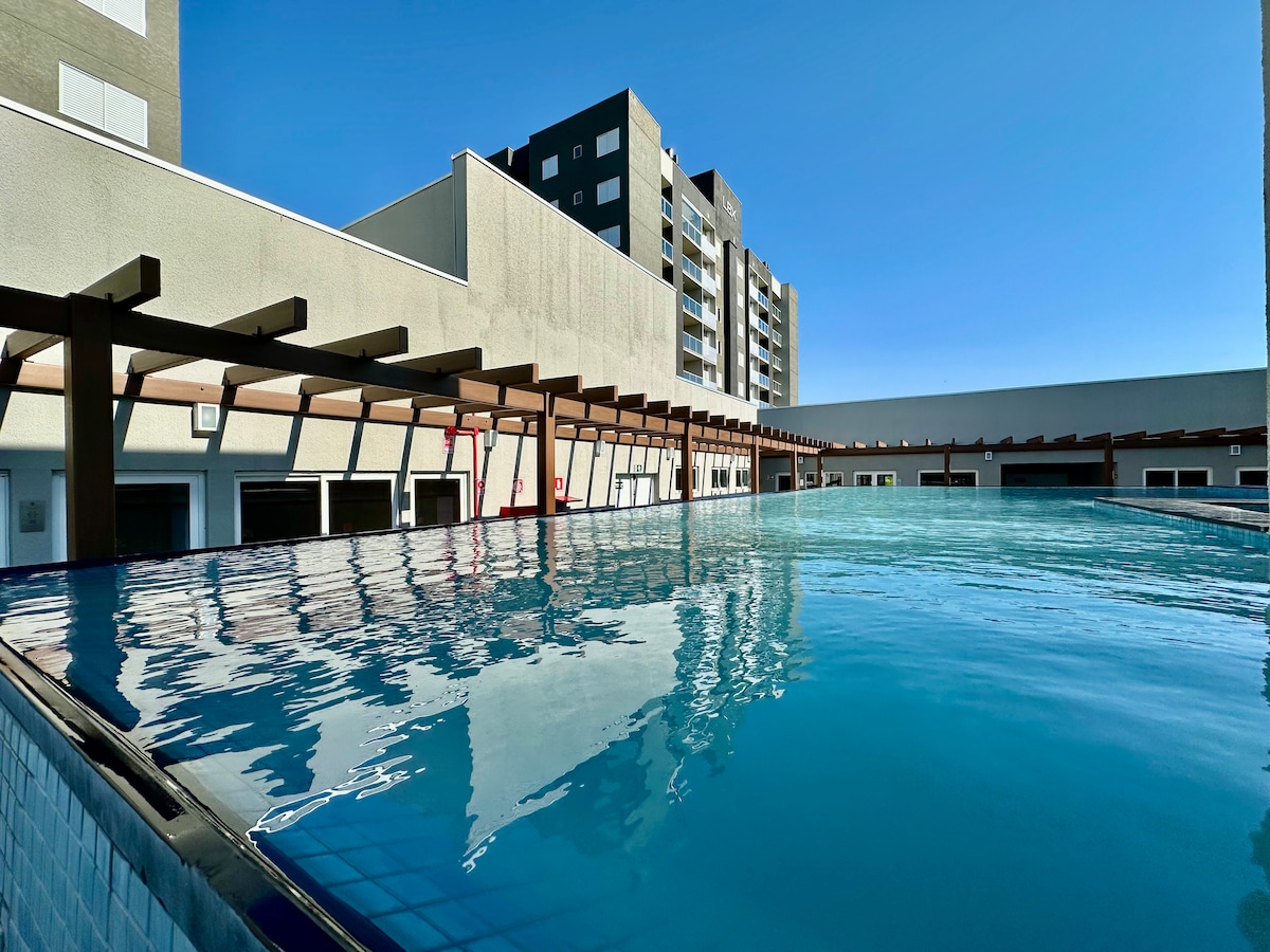 Prédio novo e de alto padrão, com academia, piscina, lavanderia , coworking e garagem. No centro, perto dos melhores bares e restaurantes de Foz do Iguaçu. Bem ao lado do edifício, há uma padaria. Nas proximidades, há supermercados, farmácias, lojas, bancos e salões de beleza. Apartamento no quinto andar, amplo, arejado e especialmente projetado para uma ótima hospedagem na Terra das Cataratas. Acomoda confortavelmente até 4 adultos.