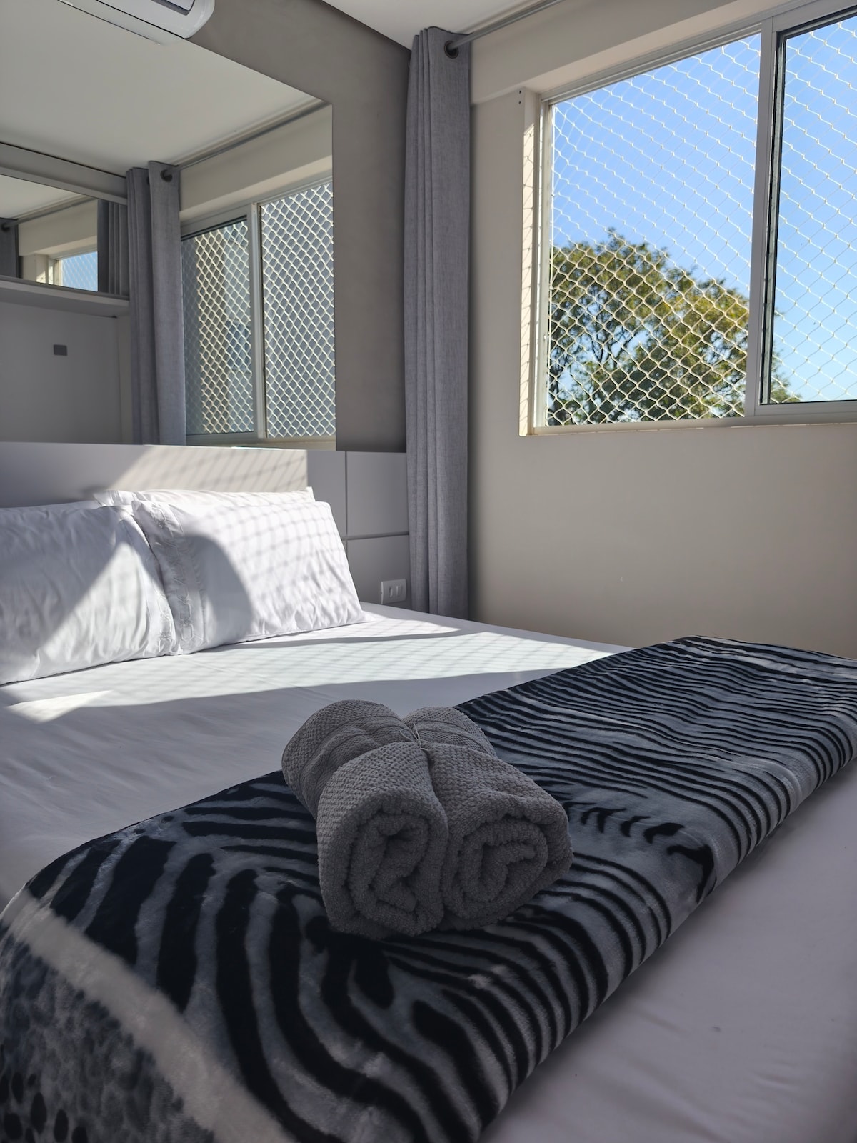 Bem-vindo ao nosso apt no Centro de Foz! Localizado em um dos poucos prédios com lavanderia, academia, estacionamento gratuito e coberto. O prédio em si é moderno com segurança/portaria 24 hrs e co-working room disponivel! Dentro da unidade, você encontrará conforto e limpeza. Dois banheiros, uma vista linda, 1 cama queen-size e 1 sofá-cama conveniente, a cozinha está totalmente equipada para que você possa preparar refeições, mesmo estando a poucos passos dos melhores restaurantes da cidade.