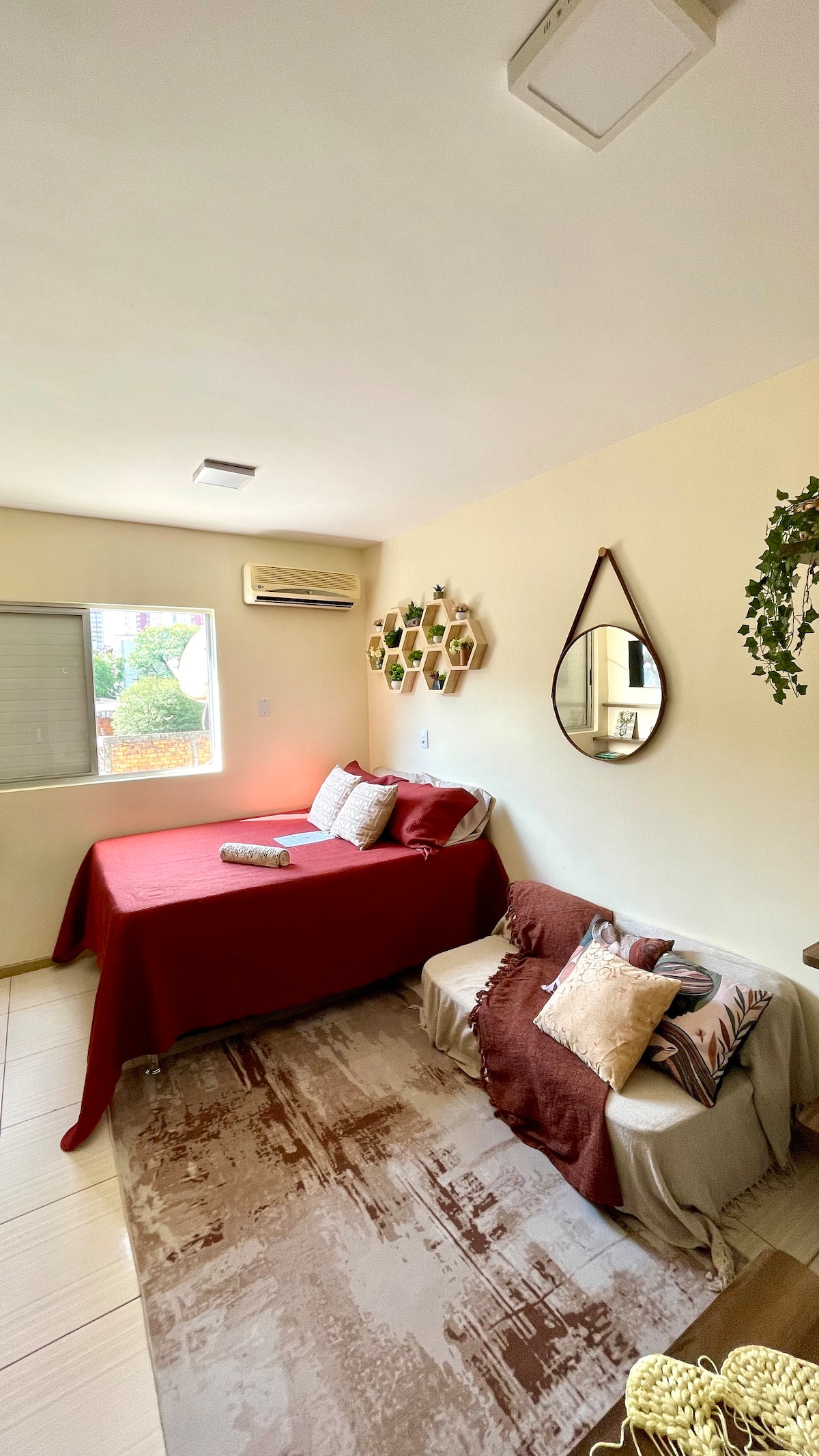 A poucos passos do Shopping Jl. Sua família vai estar perto de tudo (Mercados, Farmácias, Restaurante, Bares, Postos, Academia Smart Fit ) neste lugar bem localizado a pouco mais de 1 km do centro da cidade. Apto com e 1 vaga na garagem Lugar Lindo e aconchegante com uma ducha relaxante Seguro, com alarme, câmeras no prédio e elevador e com uma base da Polícia na frente Ar Condicionado nos ambientes. Fornecemos Roupas de Cama, toalhas de banho, sabonete, pó de café, açúcar,chá e achocolatado