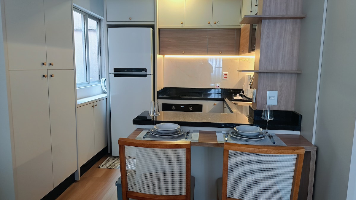 Abrace o aconchego neste lugar projetado com muito cuidado e carinho! Recém finalizado no centro de Foz, perto de tudo o que você precisa para que sua hospedagem seja perfeita. Andando você encontra supermercados, restaurantes, farmácias, posto de combustível, bancos, casa lotérica, cafés, bares noturnos, etc Espaço composto por uma suíte confortável, lavabo, sala de estar/tv/jantar, unificados com uma cozinha compacta e funcional, Na sacada você conta com uma mesa para desfrutar por do sol!