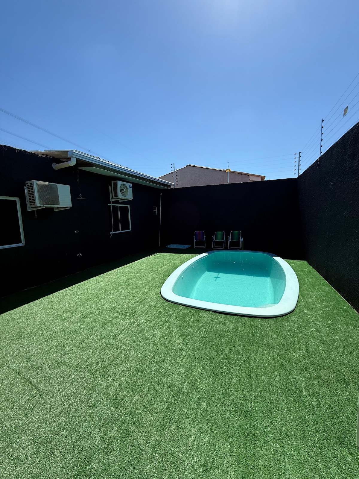 Relaxe com toda a família nesta acomodação tranquila. Com uma cozinha, microondas, chaleira elétrica, cafeteira, frigobar e utensílios de cozinha (copo, pratos, xícaras e talheres), mesa para 6 pessoas, sala com sofá cama para 4 pessoas com ar e tv, quarto privativo com cama king, ar e Tv tb, closet, pia, chuveiro e vaso sanitários, todos separados (o que facilita o uso simultâneo), roupas de cama, 1 limpeza geral inclusa na senana e demais dias trocas normais, toalhas banho para piscina/praia