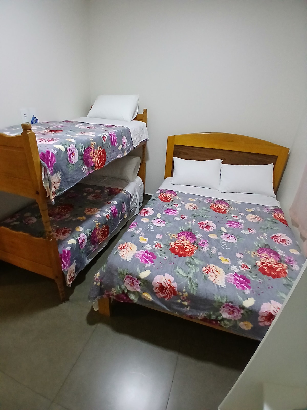 Quarto é ideal para uma estadia prática, acomodando até três pessoas com uma cama de casal e uma de solteiro. O ambiente conta com ventilador. O banheiro é compartilhado, sendo dividido com outros hóspedes uma ótima opção para quem busca um bom custo-benefício. Além disso, a cozinha também é compartilhada. Importante: não possuímos estacionamento. Pedimos que leia atentamente a descrição do anúncio para verificar se a pousada atende às suas prioridades antes de realizar a reserva