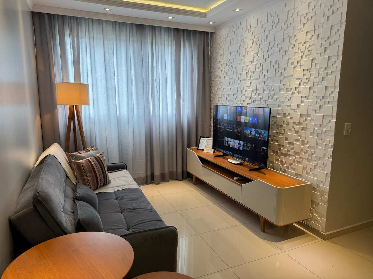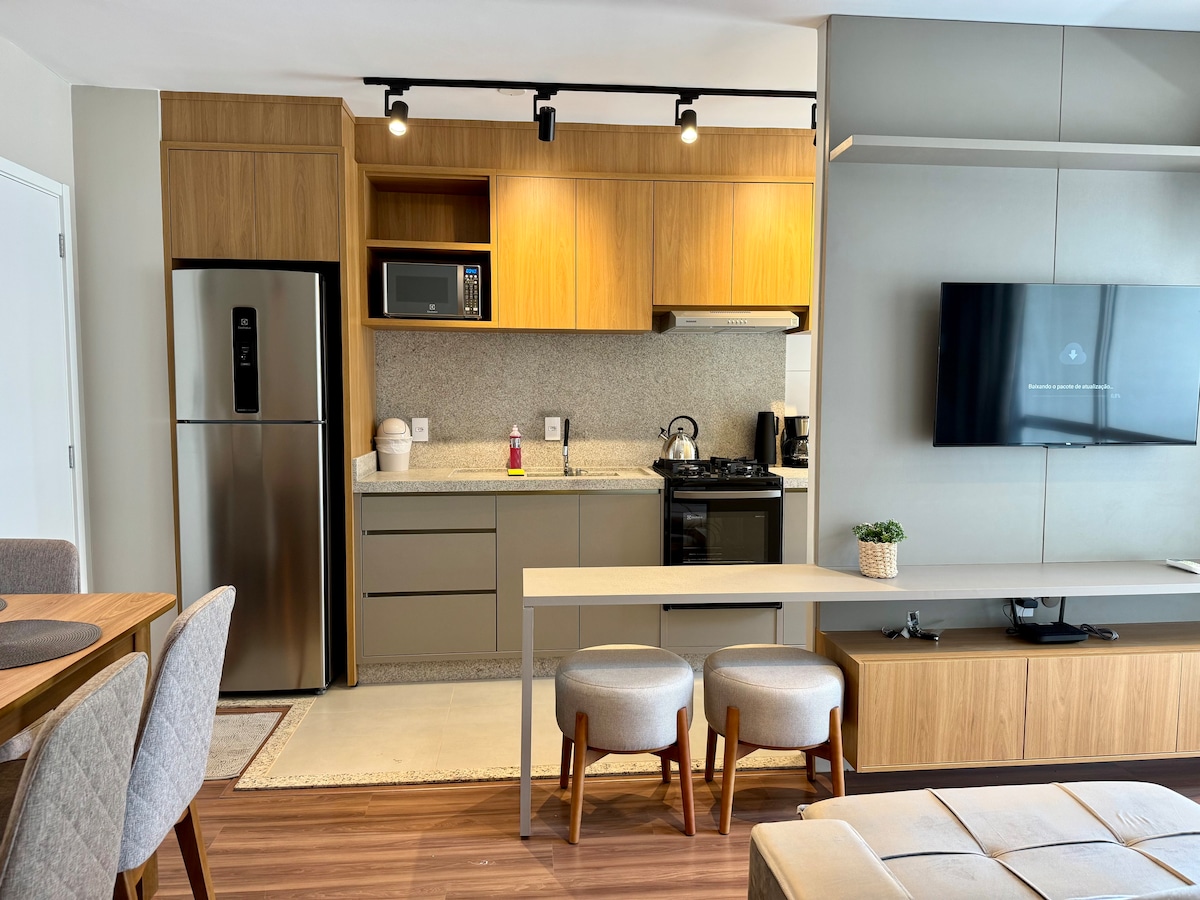 Esqueça de suas preocupações neste lugar espaçoso e confortável. O apartamento oferece tudo que você precisa para uma estadia tranquila, cozinha completa, quarto completo, sala conjugada e banheiro com blindex. TV 40", Internet, acesso a filmes e series.