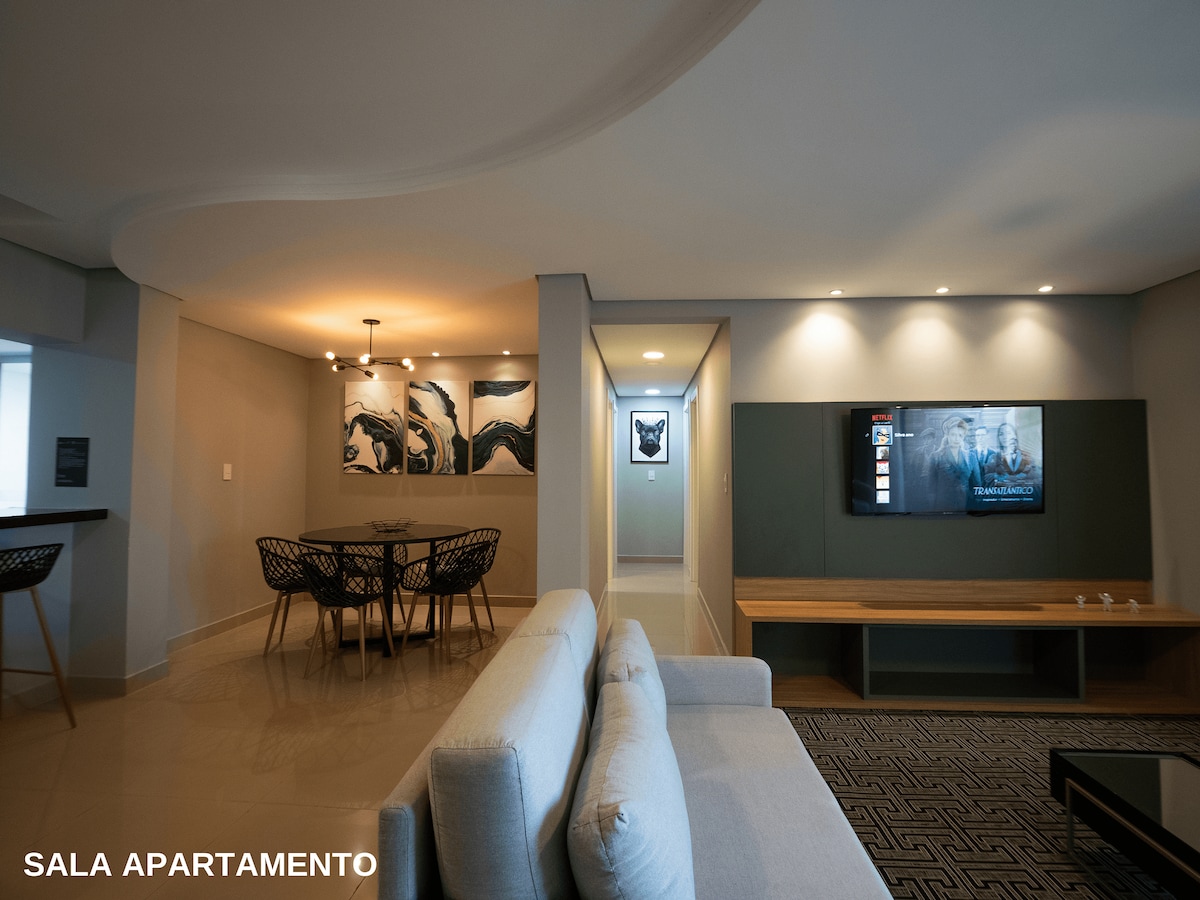 Modern 120 m² apartments for up to 10 guests, in downtown Foz do Iguaçu. Comfort, technology, and 24/7 reception. Fully equipped kitchen, private barbecue, air conditioning in all rooms, and free parking for 2 vehicles (with reservation). The condo offers complete leisure: pool, heated jacuzzi, sauna, gym, kids’ room, game room, coworking space, beauty salon, and 24/7 market.