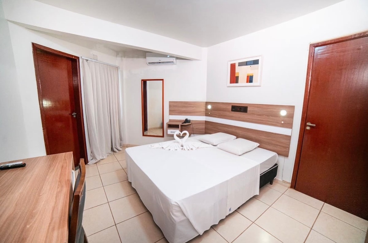 A suíte contém uma cama de casal. Possui Wi-Fi, ar-condicionado, TV smart e cofre. O banheiro privativo inclui toalhas, shampoo, condicionador, sabonete e secador de cabelo. O complexo está localizado na Avenida das Cataratas e oferece facilidades para sua conveniência. No prédio, você encontrará lavanderia self-service, casa de câmbio, agência de turismo, locação de veículos, Subway e conveniência 24 horas com caixa eletrônico para operações bancárias a qualquer momento.