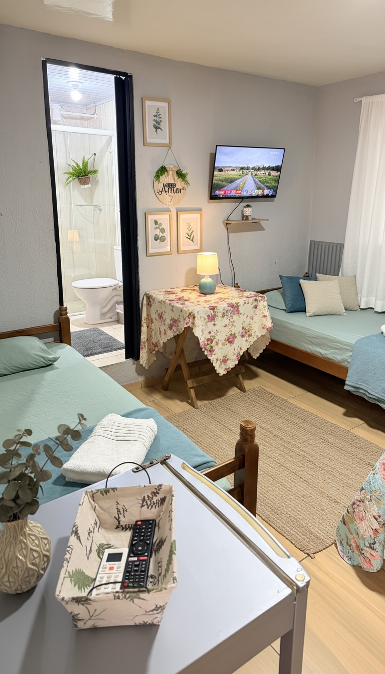 Curta uma experiência elegante e acolhedora em um espaço bem localizado, seguro e pensado com carinho para sua estadia em Foz do Iguaçu. Nosso imóvel conta com 5 suítes confortáveis e áreas comuns compartilhadas com os studios 2 e 3: Cozinha completa e área de jantar Sala de estar Lavanderia Estacionamento na garagem Portão eletrônico e câmeras de segurança Wi‑Fi de 600 mega, ideal para trabalho remoto Cada suíte é individual e oferece: