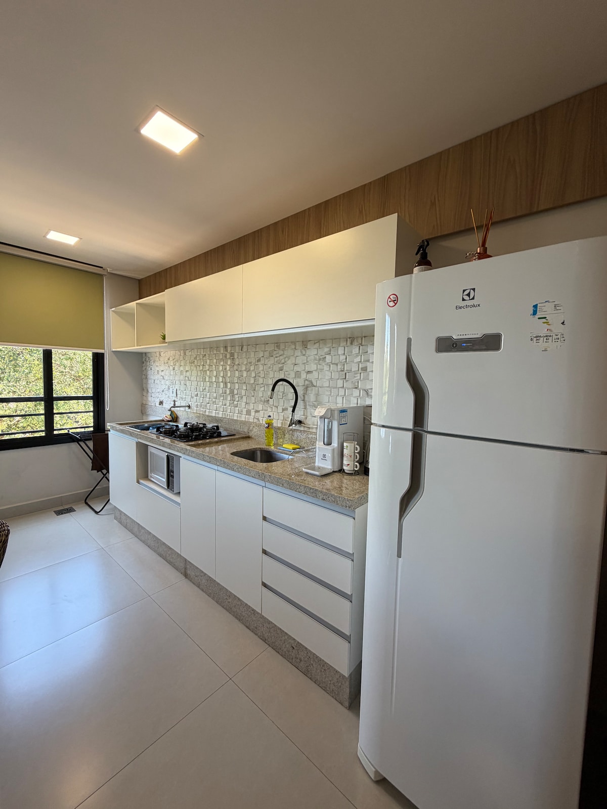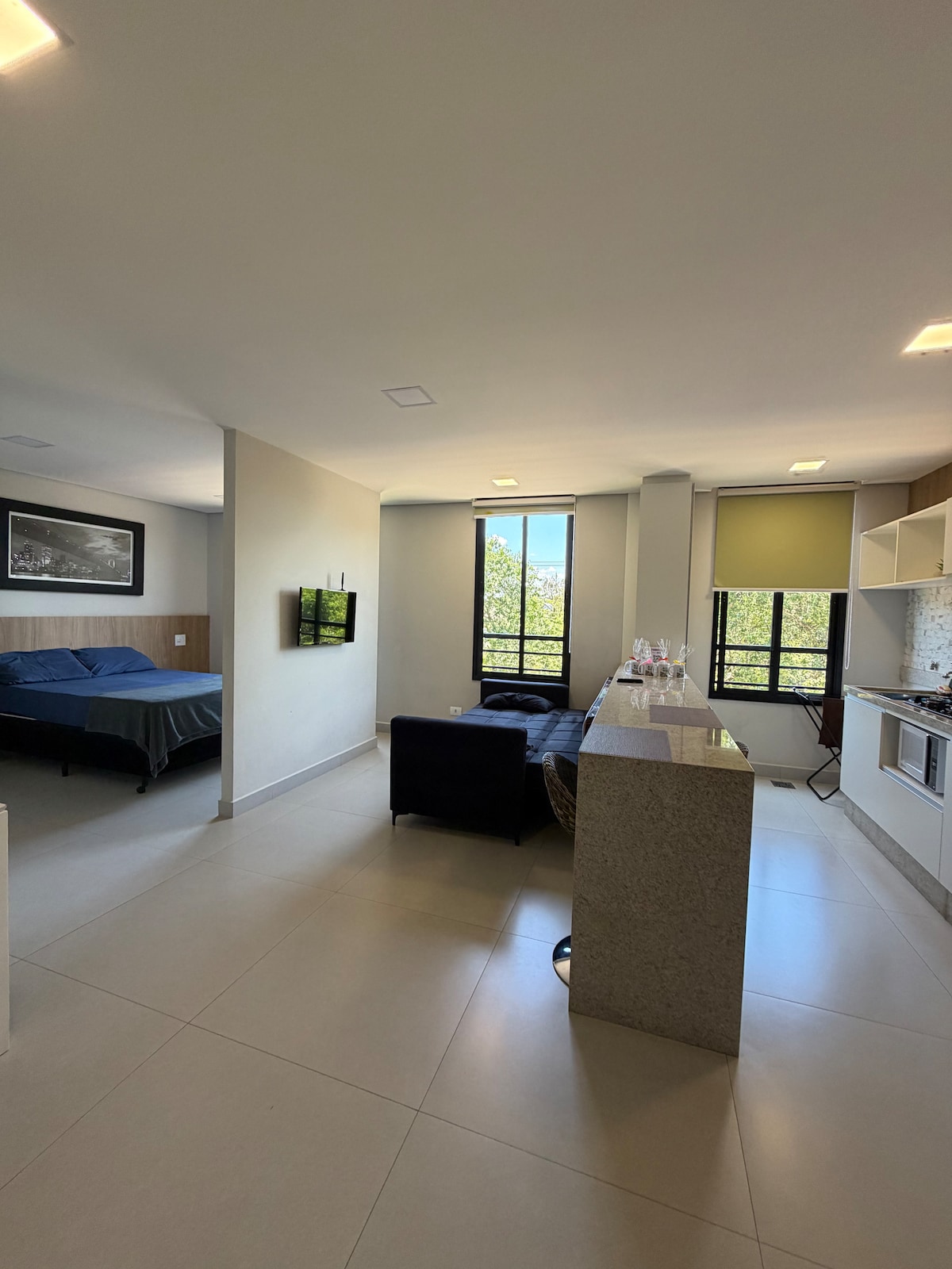 Loft compacto, moderno e novo, ideal para quem busca conforto e ótima localização em Foz do Iguaçu. Totalmente mobiliado, conta com quarto aconchegante, cozinha equipada, banheiro moderno e móveis novos e funcionais, com roupa de cama , banho completo. Ideal para turistas, casais com 1 ou 2 filhos pequenos, ou até 3 adultos confortavelmente, sendo a segunda cama um sofá-cama. Localização estratégica, próxima a atrações turísticas, shopping, mercados e restaurantes. Excelente custo-benefício.