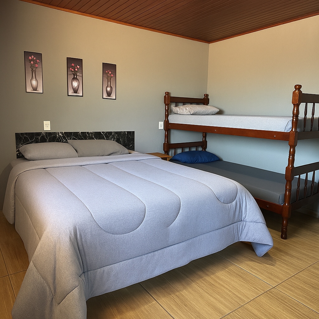 Quer conhecer as Cataratas? A Pousada Miss Roses oferece quartos tipos kit net completos, com cama, banheiro privativo, ar-condicionado, Wi-Fi e TV Smart. Estamos perto dos principais pontos turísticos: Museu de Cera, Cataratas, Duty Free, Marco das Três Fronteiras e muito mais. Bairro tranquilo, com mercado e farmácia a 2 minutos. Venha curtir o melhor de Foz do Iguaçu com conforto e praticidade!