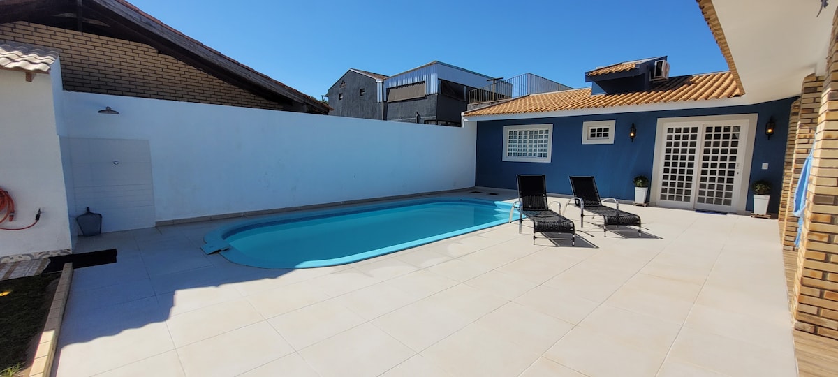 Leve toda a família a este ótimo lugar com muito espaço para seu momento de descanso e laser. Ambiente com 4 suítes e 1 banheiro externo, 4 suítes com ar- condicionado , sala de estar, sala de jantar, edícula com churrasqueira, pia, piscina, cozinha completa incluindo geladeira, micro-ondas, forno elétrico, liquidificador, sanduicheira e utensílios necessário. Garagem coberta para 1 carros e espaço aberto para mais 3. OBS: piscina não possui aquecedor e nossos valores são por pessoa.