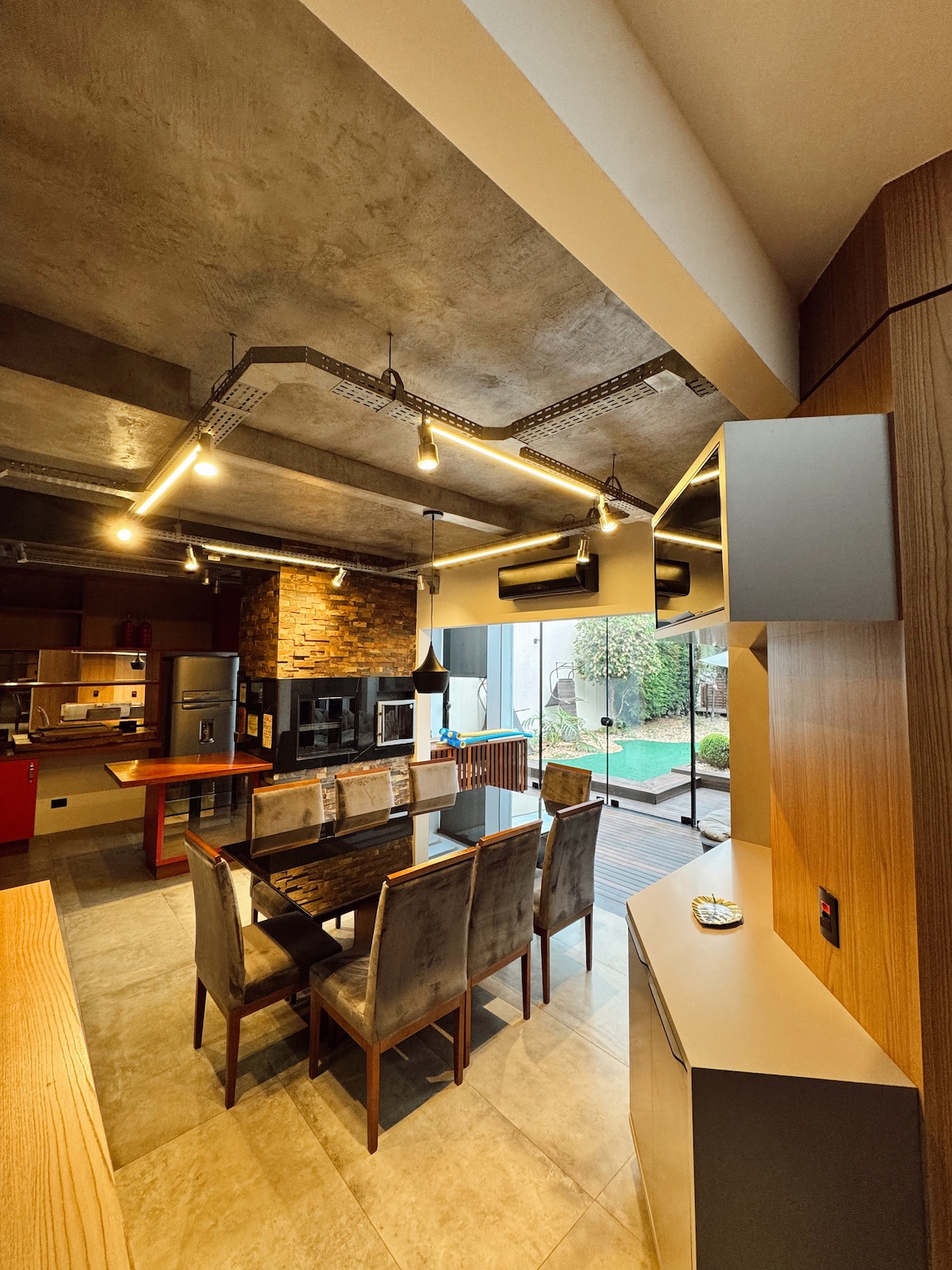 Na parte superior da casa encontrasse os quartos, sendo uma suite + 2 quartos e banheiro. Todos os cômodos com ar condicionado e sacada. Na parte de baixo fica a garagem que abriga 2 carros + sala de tv com internet e lavabo. Cozinha com utensilios domésticos, geladeira, microondas, fogão, forno elétrico. Área gourmet com ar condicionado + churrasqueiras com espetos + utensilios. Parte externa com SPA Jacuzzi, banheiro completo.