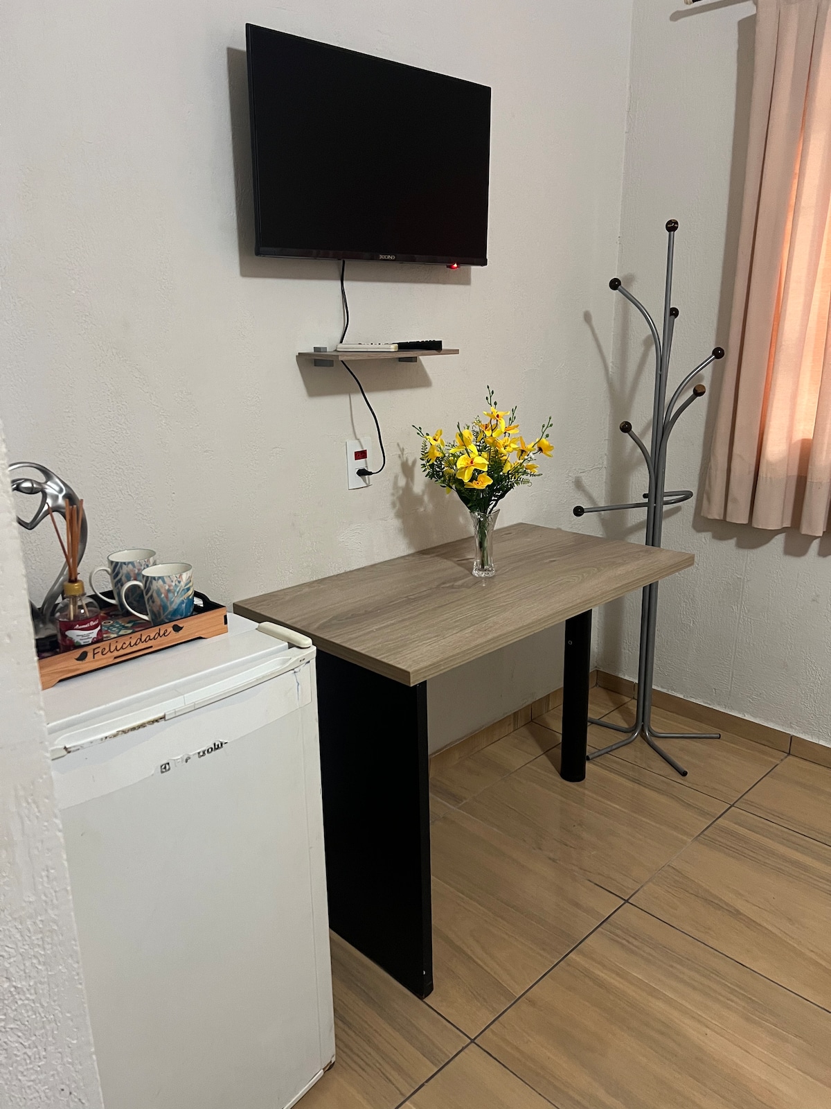 Seja bem-vindo à sua hospedagem favorita em Foz! Suíte charmosa, com entrada independente e uma mini copa só sua: tem micro-ondas, frigobar, cafeteira, jarra elétrica, sanduicheira, mesa e cadeiras. Ideal pra um café ou lanchinho. Ah, e os itens para o primeiro café da manhã são por nossa conta! 😊