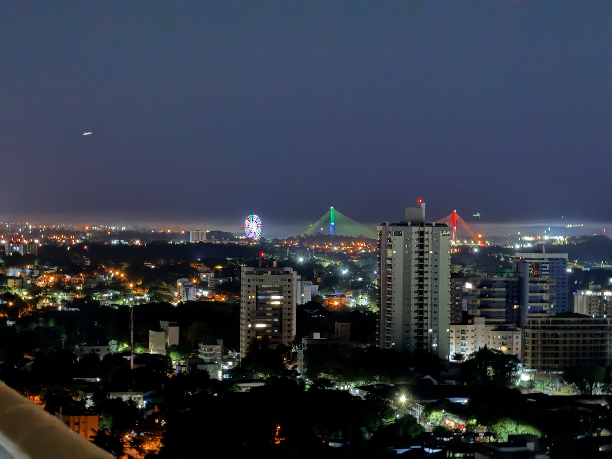 - Estúdio aconchegante com vista para o Rio Paraná e Paraguai. - Acomodações: cama queen-size, 2 TVs (quarto/sala), Wi-Fi e cozinha completa (cooktop e microondas); Sofá-cama para hóspedes extras. - 2 Ar-condicionados: quarto e na sala/cozinha - Localização central em Foz, próximo a restaurantes e terminal urbano. - Fácil acesso à ônibus para Argentina, Paraguai, Cataratas e Itaipu. - Portaria 24h, estacionamento incluído no prédio. - Lavanderia OMO (pagamento app) - Check-in 14h Checkout 10h