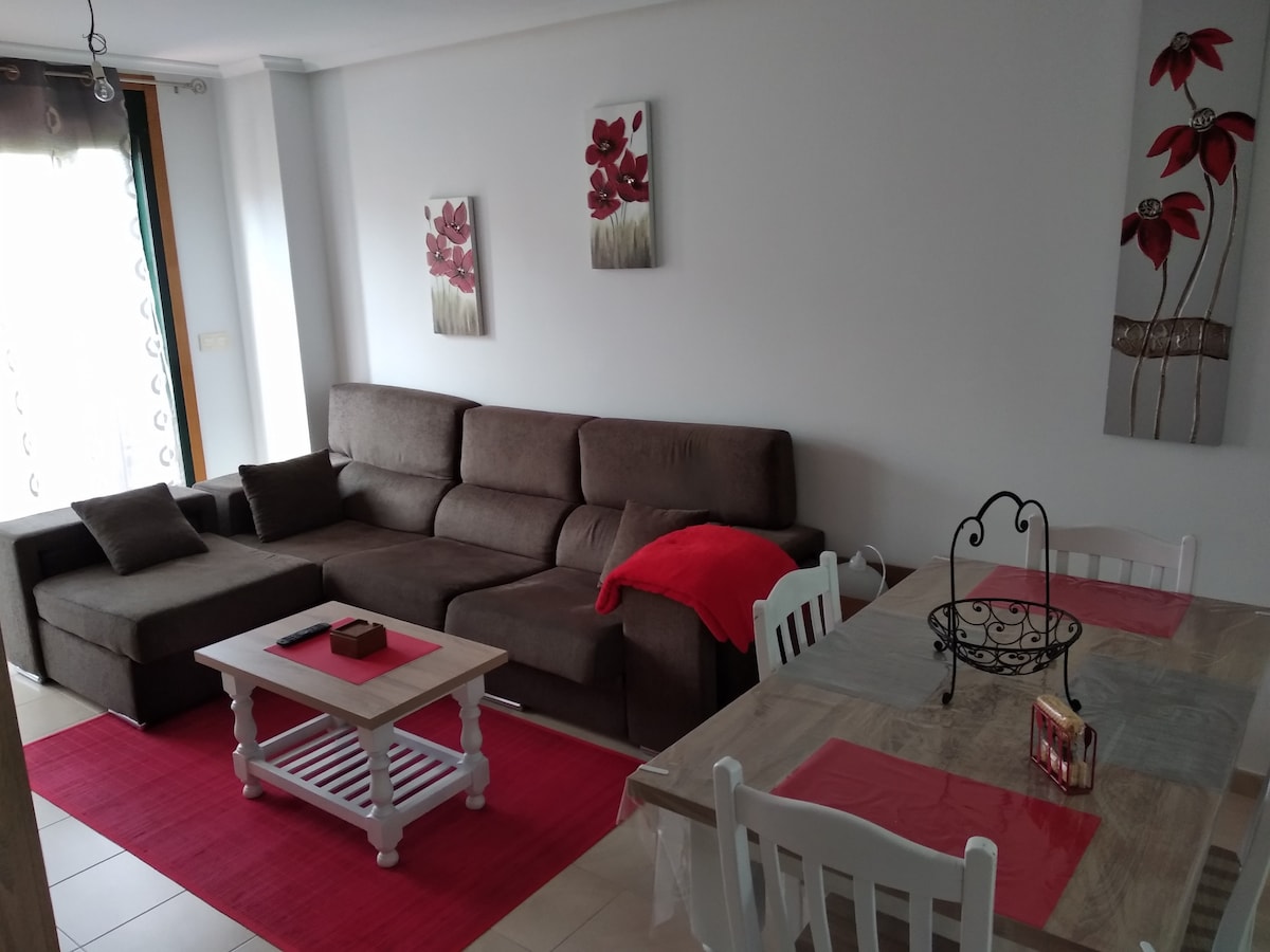 Apartamento situado a 3 minutos caminando de la playa " Da Rapoadoira". Dispone de 2 habitaciones dobles , la principal con cama matrimonial, vestidor, y baño en suite. La otra habitación doble con 2 camas de 90cms., dispone de armario. Tanto las 2 habitaciones, como el salón tienen salida a una amplia terraza con orientación mediodía. Dispone de plaza de garaje. El apartamento está en perfecto estado. Supermercado debajo del edificio.