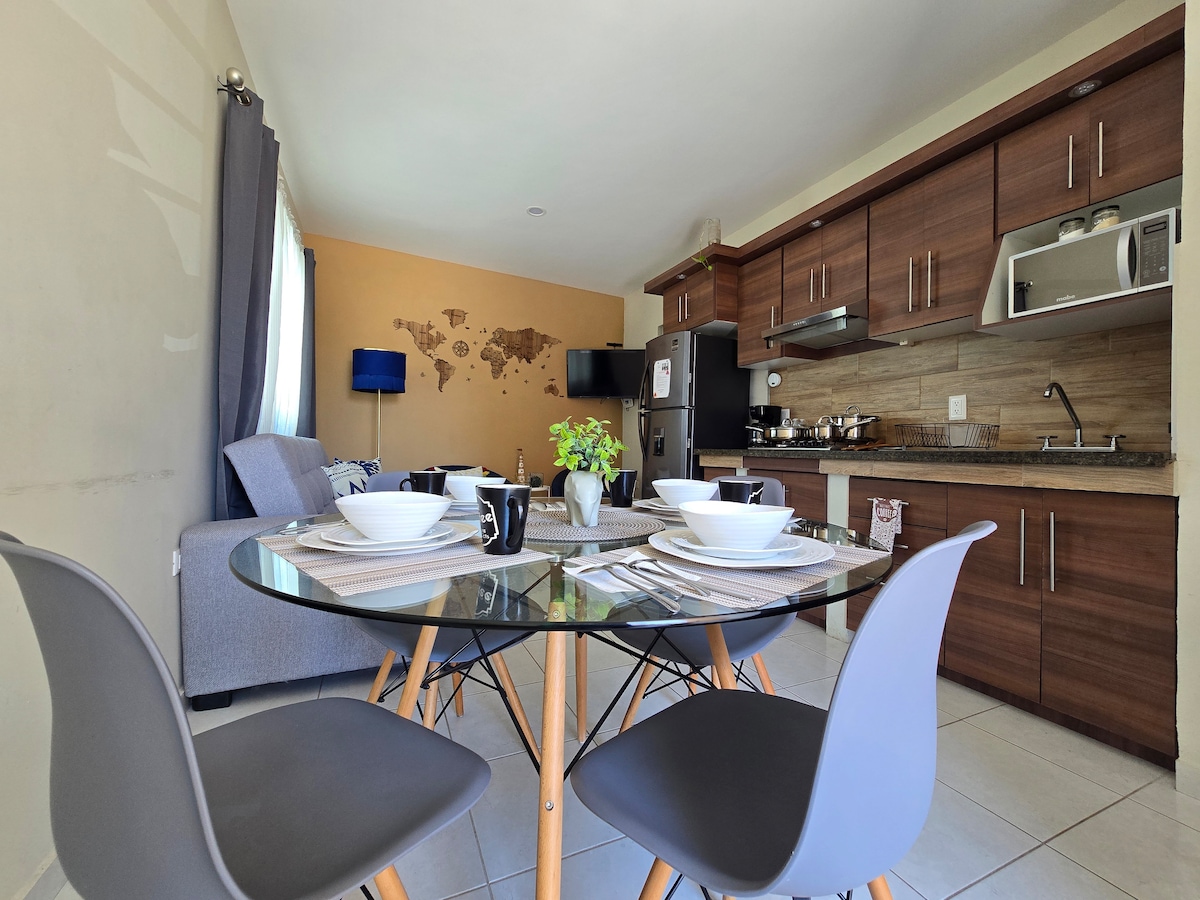 Disfruta este alojamiento con excelente ubicación, a unas cuadras del Boulevard Tepic-Xalisco, cerca de la UAN, hospitales, Parque la Loma. (4 min🚗) 🌳 NETFLIX Y PRIMEVIDEO GRATIS 🤩 🍿 🎥 Departamento de una recamara Queen Size con aire acondicionado❄️, mesa de trabajo, sofá cama, comedor y cocina equipada con todos los utensilios necesarios