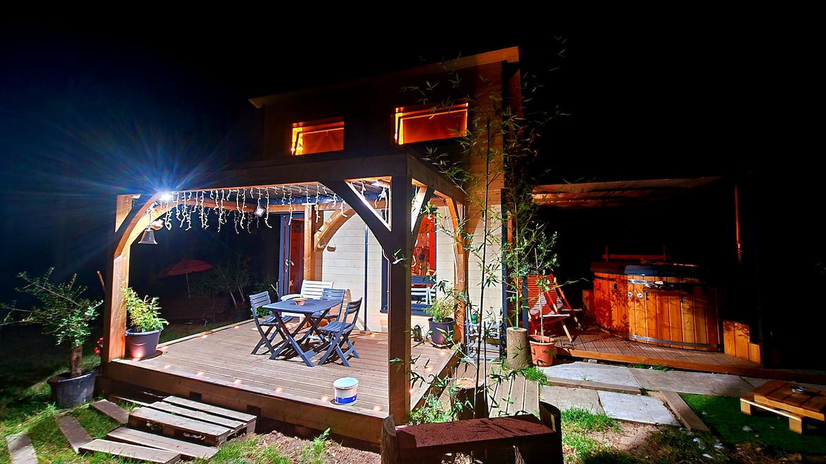 Plongez dans l’atmosphère chaleureuse et atypique de notre chalet en bois cubique sur pilotis, niché en pleine nature avec une vue imprenable sur la forêt. Idéal pour des moments cosy au coin du feu, ce duplex offre un espace parfaitement équipé : une cuisine fonctionnelle, une salle de bain italienne spacieuse, un lit parental. Profitez d’un spa privé, d’un sauna tonneau et d’une cuisine d’été avec braséro pour des soirées conviviales. En hiver, le kota grill vous promet des instants magiques.