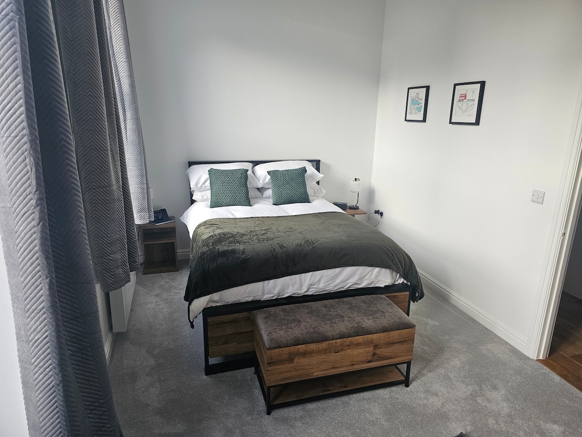 Our Cabin offers a cosy independent stay with a fully equipped kitchen, lounge, bedroom with super-king bed, luxury en-suite shower and utility with additional toilet. This eco friendly home has air sourced underfloor heating throughout and contains many upcycled items from the exterior reclaimed scaffolding boards to the many repurposed gems to be found inside. Stepping outside there is a private south facing patio and garden with its own parking space, all just a leisurely walk from town.