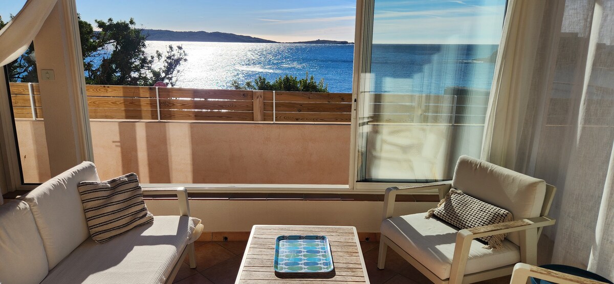 « SEAVIEWS BY JENNI MENTON »présente: Superbe 2 Pièces NEUF en Front de Mer, sur la Promenade du Soleil. 50 m2 de design,large terrasse de 18m2, vue mer comme sur un bateau de tout l'appartement. Conçu pour le confort de 4 personnes. Décoration très recherchée,matériaux et équipements haut de gamme. GARAGE FERMÉ* ASCENSEUR CLIM SMART TV INTERNET ILLIMITÉ HAUT DÉBIT ENCEINTE BLUETOOTH BOSE A quelques minutes à pied de tous les commerces et activités. Bus en bas de la résidence, gare à pied.