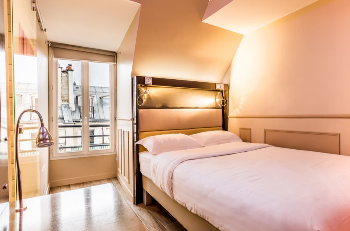 George***酒店标准单人房,独立洗手间。Astotel品牌三星级精品酒店,地理位置优越,位于巴黎第9区中心,毗邻蒙马特 (Montmartre)、百货商店 (Grands Magasins)、毗邻加尼叶歌剧院 (Opera Garnier)、及公众交通线路。 24小时前台服务。 入住和离店当日可提供全天免费行李寄存。