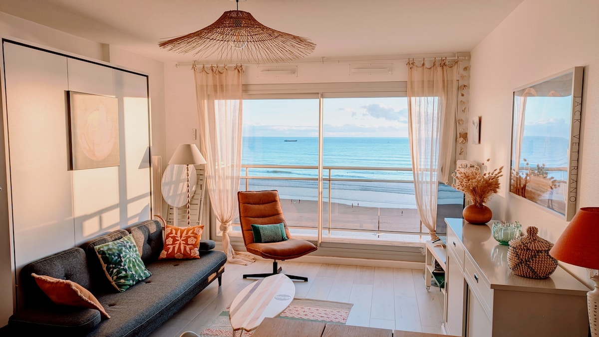 Bienvenus aux Sables ! Joli studio de 32 m2 situé au 7ième étage d'une résidence de standing en plein coeur du remblai. Une vue splendide face à l'océan, sur toute la partie droite de la baie et l'entrée du chenal. La plage et le remblai à quelques pas ! Pour votre confort, une place de stationnement gratuite vous est réservée durant la saison estivale sur juin/juillet/août. Parking à 10mn à pied du logement. Tout est prévu pour vous accueillir dans les meilleures conditions. À bientôt !