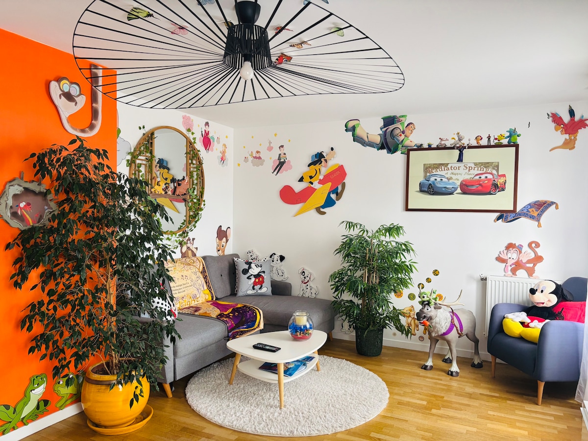 Profitez d'un logement élégant et central (72 mètres carré), décoré autour de la magie disney et situé à seulement 15 minutes à pied de Disney. L'immeuble est calme et bien entretenu et vous avez tout à coté ( boulangerie, restaurants, Auchan, Val d'europe et la Vallée village).L'appartement dispose de deux chambres , une chambre parentale avec un lit de 160 et une chambre d'enfants équipée d'un lit superposé. Le canapé du salon fait également couchage . Décoration de Noël dès le 1 er décembre .