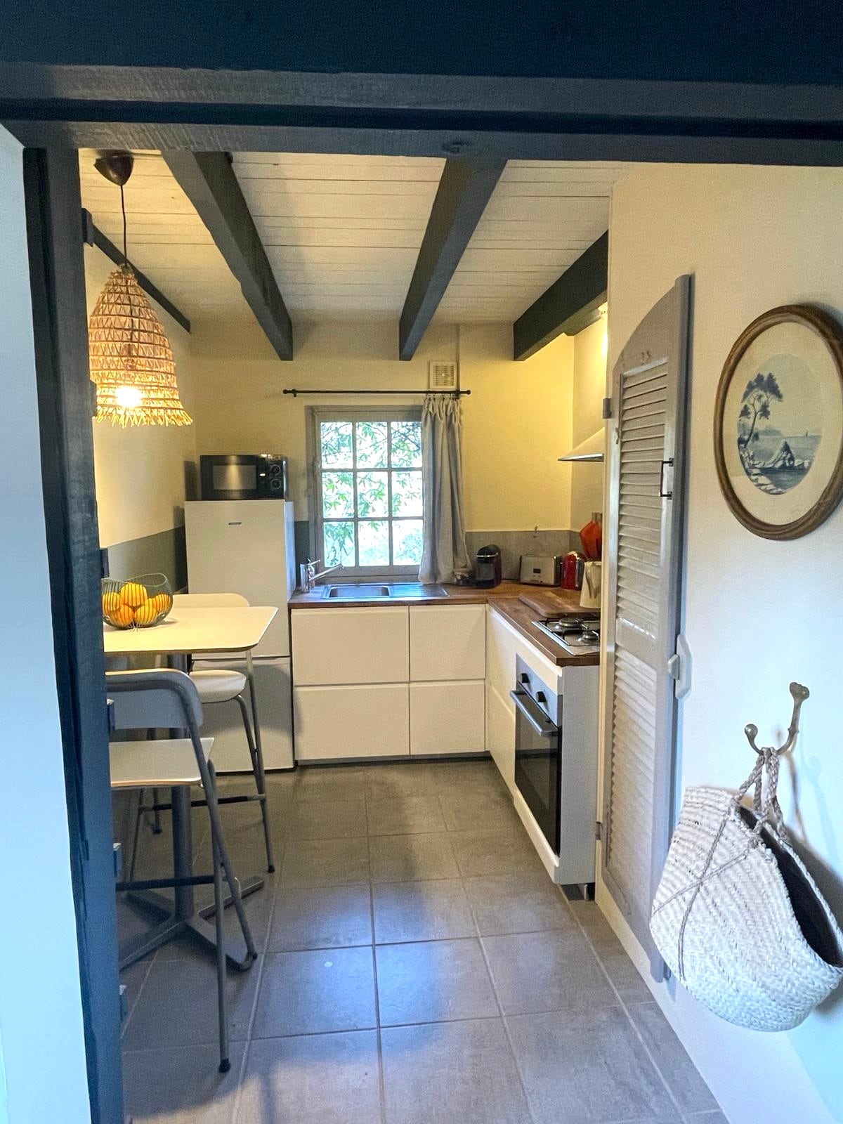 Meublé de tourisme classé 4 * : 65m2 dans écrin de verdure. La terrasse privative donne sur une forêt de chênes et de pins avec vue sur les collines. Une chambre avec un grand lit (qualité hotellerie) et une salle de bain attenante + une cuisine ouverte toute équipée et donnant sur un salon avec 2 banquettes-lits simples. Équipement complet, piscine partagée avec les propriétaires Nous serons ravis d’échanger sur les bonnes adresses de la région si les voyageurs le souhaitent.