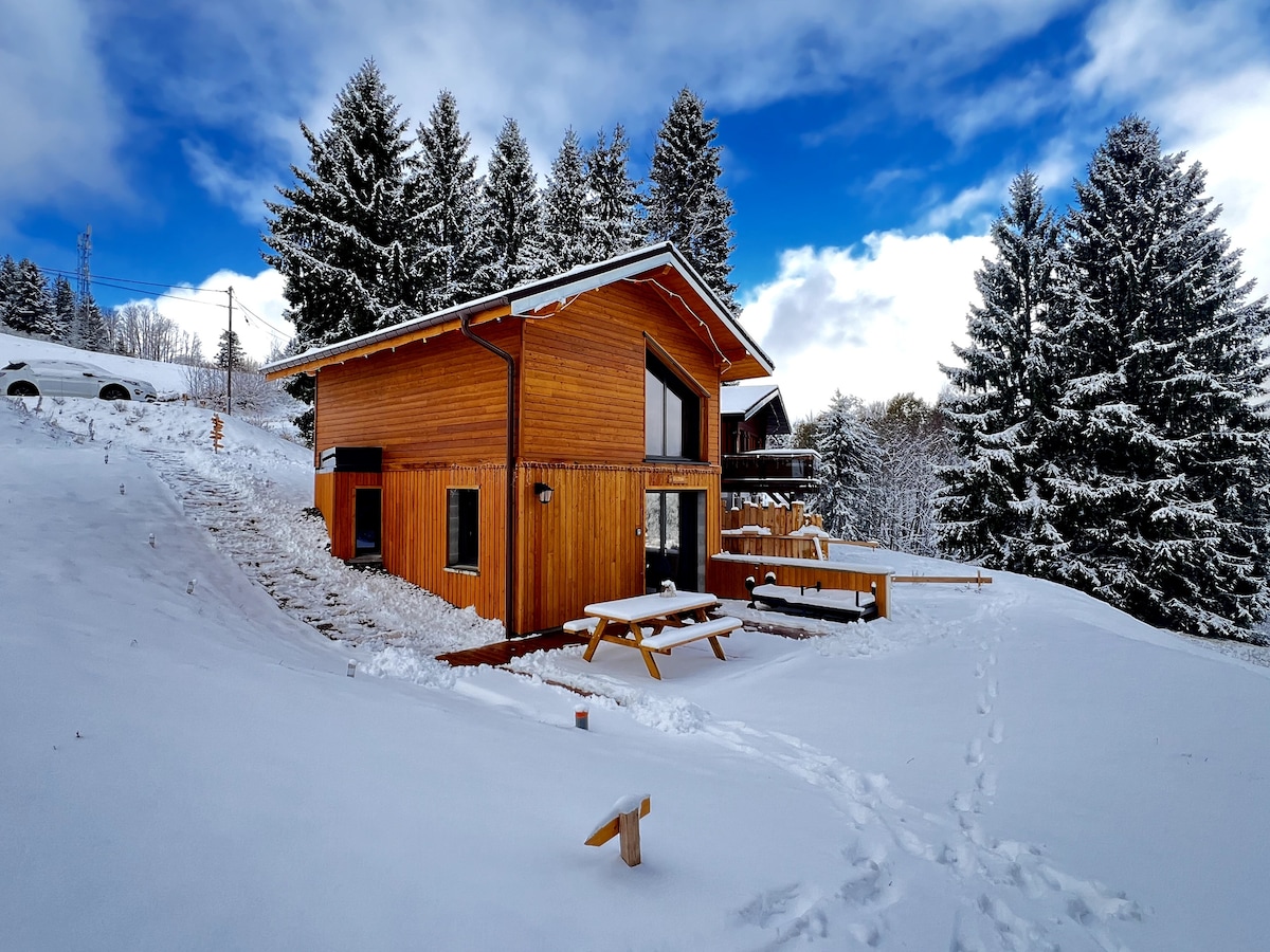 Logement spacieux décoré avec soin avec une grande pièce à vivre et une cuisine tout équipée.. la chambre est une suite avec douche et un grand lit (160x200) . Il y a un jardin avec une petite terrasse privative ainsi qu’un parking privé.. Le chalet est proche des restaurants, des activités adaptées (pistes de ski et alpin, chemin de randonnée et VTT).. parfait pour les couples, les voyageurs en solo, les voyageurs d'affaires.. MAIS UNIQUEMENT 2 PERSONNES (pas de bébé 👶)