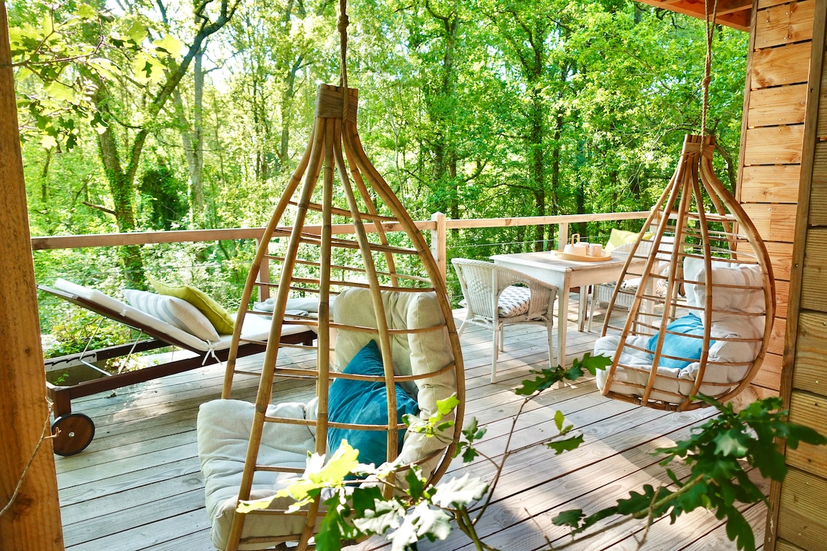 Détendez-vous dans ce logement calme et élégant. Profitez d'une vue splendide perchée à 6 mètres de haut, vous êtes seuls au monde ! Le Jacuzzi n'attend plus que vous... Quelque soit la saison vous vivrez toujours un moment cocooning inoubliable entre Corrèze et Périgord. Idéalement situé pour les visites touristiques (voir Profil Hôtes). Possibilité d'options sur reservation (massage, menu dîner, planche gourmande à partager, champagne, petit déjeuner, location 2 CV, vol en montgolfière...).
