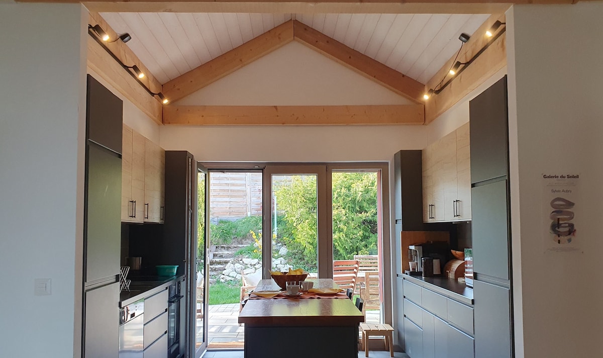 Situé à 15 minutes à pied de la Vue-des-Alpes, cet espace généreux et lumineux accueillera avec plaisir des petits groupes ou des familles. La salle de séjour polyvalente avec vue sur les Alpes permet d'organiser des stages, des séminaires ou des fêtes de famille (capacité 40 personnes). Vidée de ses meubles, elle permet d'y pratiquer des activités plus méditatives, p. ex. du Yoga avec jusqu'à environ 10 personnes. Pour les activités musicales, un piano est à disposition des clients.