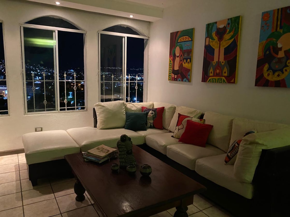 Enjoy your stay with family or friends in this SAFE, spacious, and centric one-bedroom apartment! ✔ FREE PARKING (for 1 car) ✔ King size bed ✔ Sofa bed Queen size ✔ Smart TV with Netflix and other apps. ✔ Air conditioning in Living Room and Bedroom. 5 mins from: ✔ Centro Cívico ✔ Mall Las Cascadas ✔ Univ. Jose Cecilio del Valle 10/15 mins from: ✔ Mall Multiplaza ✔ Honduras Medical Center ✔ Embajada Americana