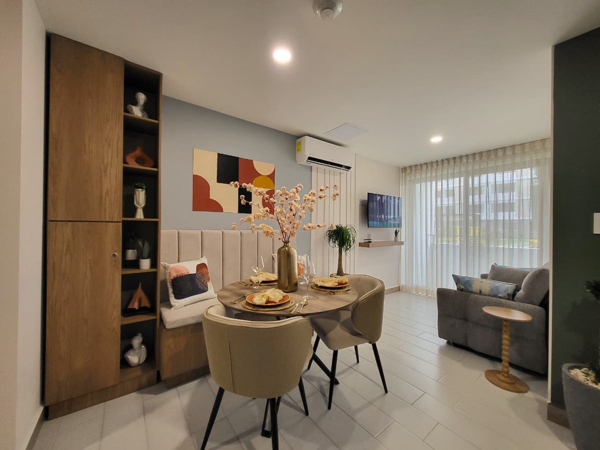 Welcome to your urban oasis at Distrito Artemisa—minimalist design crafted to flood every corner with space and light. Sleek layout with sweeping 180° panoramic views Private parking and 24-hour security Fast Wi-Fi and a dedicated workspace Fully equipped kitchen, washer, dryer, and 60″ TV Level-5 plaza filled with restaurants and shops Minutes from UNAH, top supermarkets, and Multiplaza Mall Rest, work, and explore while enjoying the perfect blend of comfort, style, and a prime location!