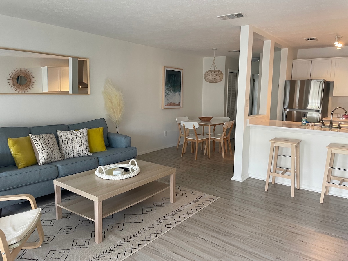 Stylish & relaxing 1 bedroom (king bed) condo with kitchen, dining area, living room, bathroom, patio, & laundry. The condo is in Gulf Highlands Beach Resort with 11 pools (5 heated seasonally & 1 beach side pool), 4 tennis courts, shuffleboard courts, & more – 2 dogs are welcome! Make your Panama City Beach getaway perfect with this updated & relaxing condo with everything you should need while enjoying your time at the beach (2 dog maximum, 25lb weight restriction per dog; Sorry, no cats).