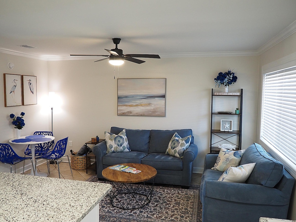 Updated, first floor studio, with all the comfort and amenities you'll need for your visit to the Beach. Have your coffee on the back porch looking onto the lake or take a 3 minute stroll across the street to the beach. Take a dip in the pool. Pier Park is 5 minutes away and has everything you would need. (Target, Fresh Market, endless food and bars). Rosemary is a 10 minute drive. 15 minutes to the airport. Enjoy the best parts of the beach and surrounding areas from here with ease.