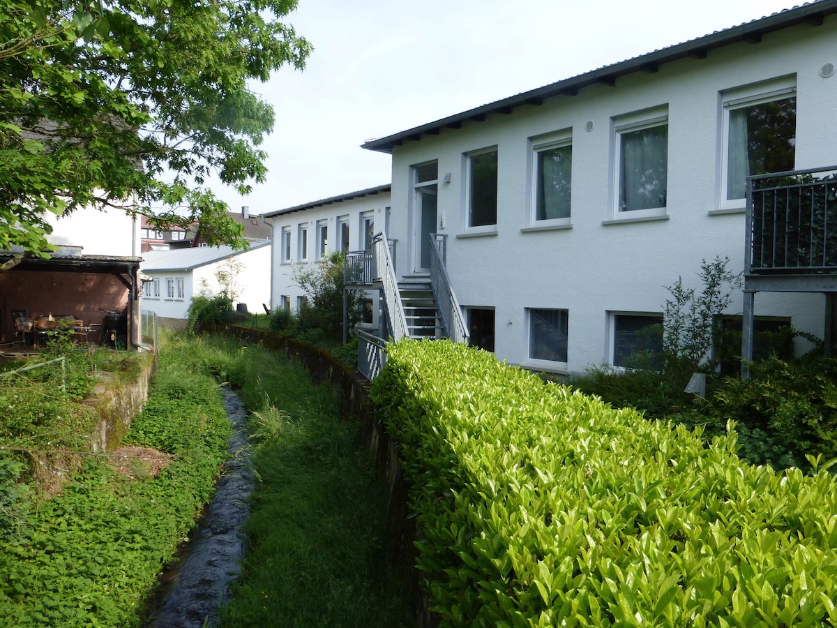 Renoviertes Appartement 30qm, in ruhiger Lage. Doppelbett und eine Schlafcouch sind vorhanden, so dass maximal 4 Personen übernachten können. Teeküche, mit Nespresso Kaffeemaschine, Wasserkocher, Mikrowelle, Kühlschrank und Spüle vorhanden. Evt nicht für Kleinkinder geeignet, wegen Treppe. Nach Vereinbarung ist der Pool exklusiv nutzbar. Zugang über den Garten. Altstadt mit Burg und Bahnhof ist fußläufig in 8 Min. erreichbar, von dort fährt eine Bahn direkt zum Hauptbahnhof Frankfurt.