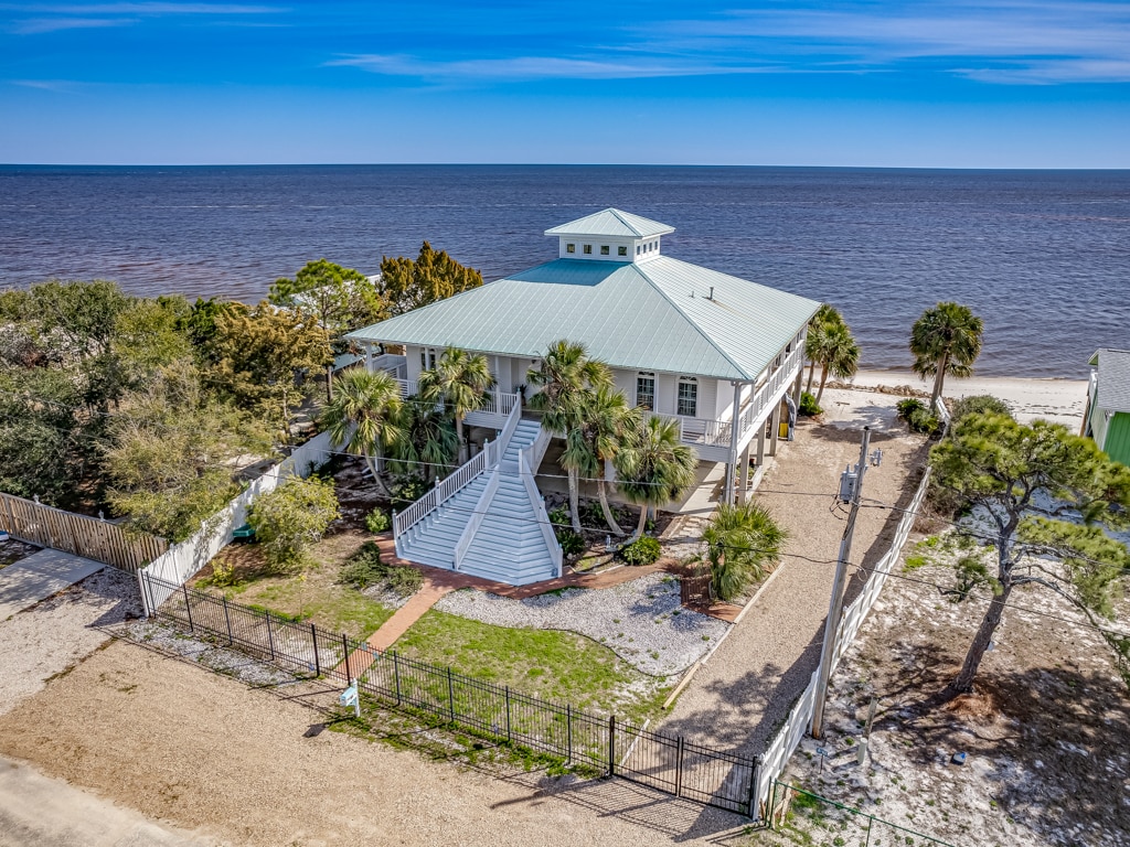 Relax with the whole family, enjoy a girls weekend, or have a private couple’s retreat at this amazing gulf front home. Take walks on the beach, enjoy beautiful sunsets, or meet new friends at the Tiki Hut or Marina (across the street). See dolphins and birdwatch from the deck or the inside living area. Like to cook? The kitchen is well equipped with double ovens and a Viking gas stove. Watch a football game & enjoy a cocktail from the downstairs porch tiki bar or take a nap in the hammock.