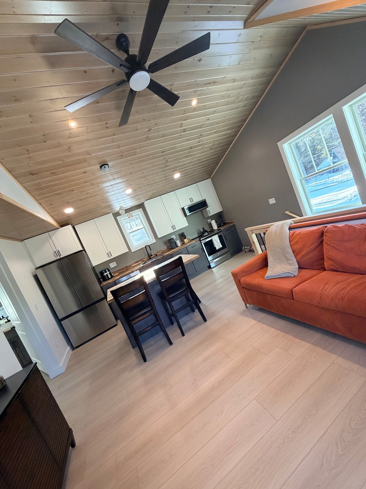 Welcome to our charming studio apartment in Rangeley! Enjoy stunning, sweeping views of Rangeley Lake and shared lake access just a 5-minute walk away. The cozy space features a queen bed with a heated mattress for ultimate comfort, along with a full bath & fully equipped kitchen. Located just 15 minutes from Saddleback Mountain, 5 minutes from downtown Rangeley, walking distance to Mingo Springs golf course, it’s an ideal retreat for the outdoor enthusiast couple and relaxation seekers alike.