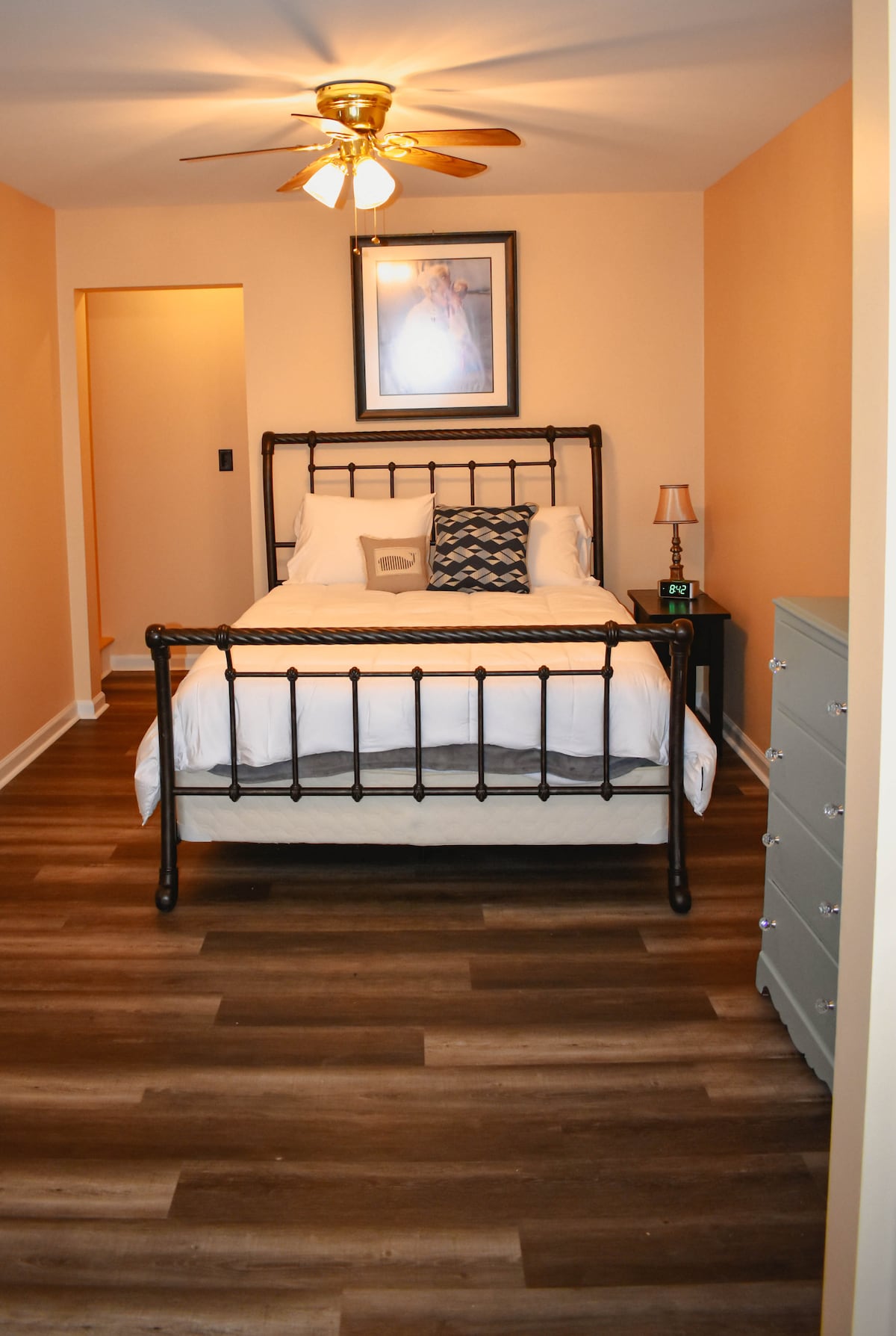 4 minutes from Purina Farms, this shared property is dedicated to your privacy, where you’ll enjoy a jacuzzi tub, private deck, 3 bedrooms, 2 full baths, gas fireplace, fully stocked kitchen, indoor & outdoor dining for up to 20 people (contact host for any events or meetings) laundry (shared), fenced in area for dogs, relaxing garden areas, walking trails through the woods, 2 fire pits, and an above ground pool in the summer months. Great for weekend getaways and anyone wanting to unplug.