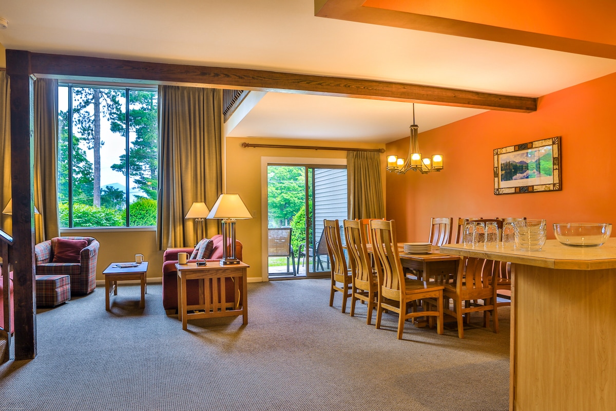 The unit offers a open space design. Cathedral ceilings, combined kitchen, dining and living room. Wood burning fireplace. 2 full baths. 2 bedrooms with a separate sleeping loft.over 1700 feet of living space. Central Air Conditioning. walking distance to the municipal beach, main street and Olympic Arena. Main street offers numerous restaurants, shopping and water craft rentals including canoes, kayaks, paddle boarding. Stay in the heart of Lake Placid miracles have been made for centuries.