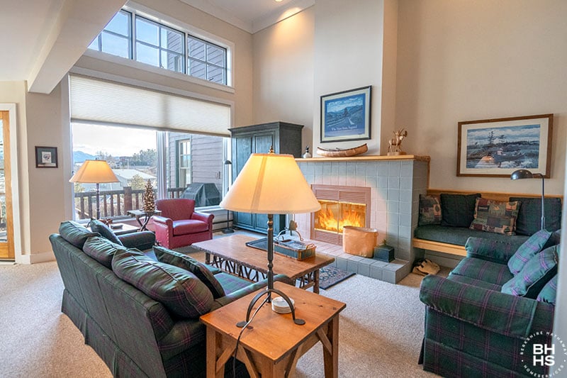 1卧室公寓,带壁炉和山景