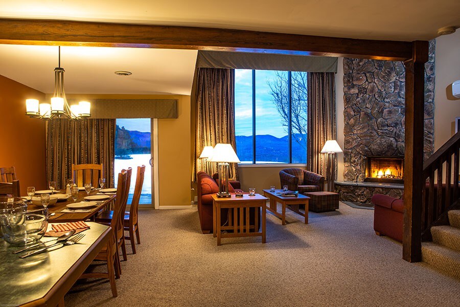 Superior One Bedroom Suites exist on the 1st floors and will accommodate up to four guests. Also provide guests with an in-suite cast iron gas fireplace and full-size outdoor porch. "Besides boasting the best spa in Lake Placid, Whiteface Lodge is also proud to present the KANU Dining Room, one of the best restaurants in Lake Placid. " More information and pictures on the White Face Lodge website.