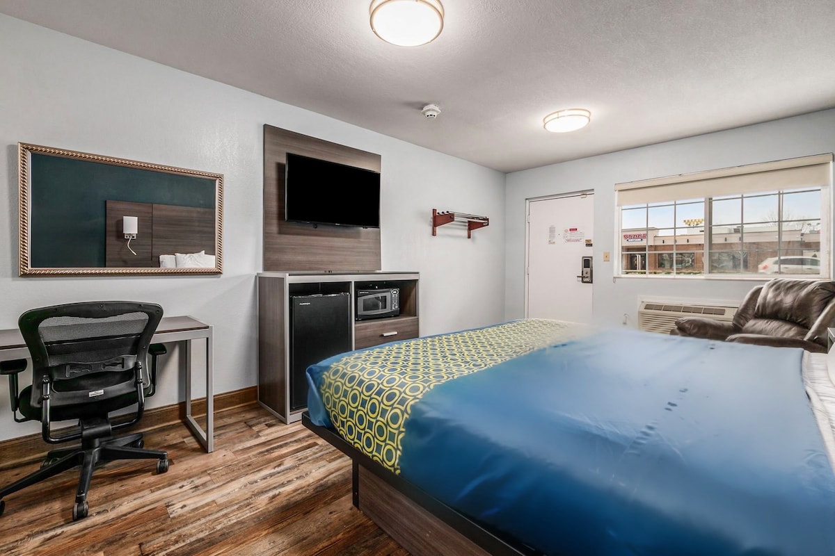 Our premium smoke-free room combines comfort and convenience with a microwave, refrigerator, flat-screen TV, and free Wi-Fi. Families enjoy kids stay free, and pets are welcome. After exploring Highbanks Metro Park or shopping at Polaris Fashion Place, unwind with ease. Free parking and nearby dining make for a practical, affordable, and welcoming Columbus stay.