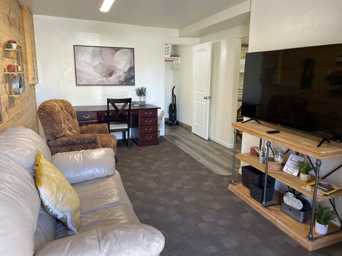 "Hygge" is a Danish word meaning a quality of coziness or a feeling of well-being. This unique space used to be a woodworking shop, and has been meticulously redesigned to provide you with a comfortable stay. It's located behind our house in a quiet neighborhood, but close to the highway for easy commuting. We have wifi, a 65" Roku 4K TV, and a fully stocked kitchen! We are also kid and pet friendly and have a yard behind the apartment.
