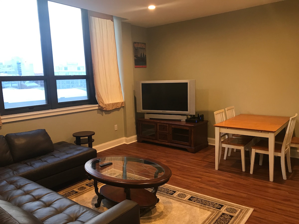 This building has an ELEVATOR for easy travel & stairs as well. Two bedroom apartment located in the heart of chinatown where all tourist bars, restaurants, grocery stores & boutique stores are. One block from the convention center, walking distance to the city, 15 minute drive to south Philadelphia, short walking distance to all bus stops & train stations. Most convenient stay but building is located in the center so it can get noisy, please contemplate on booking if you are sensitive to sound.