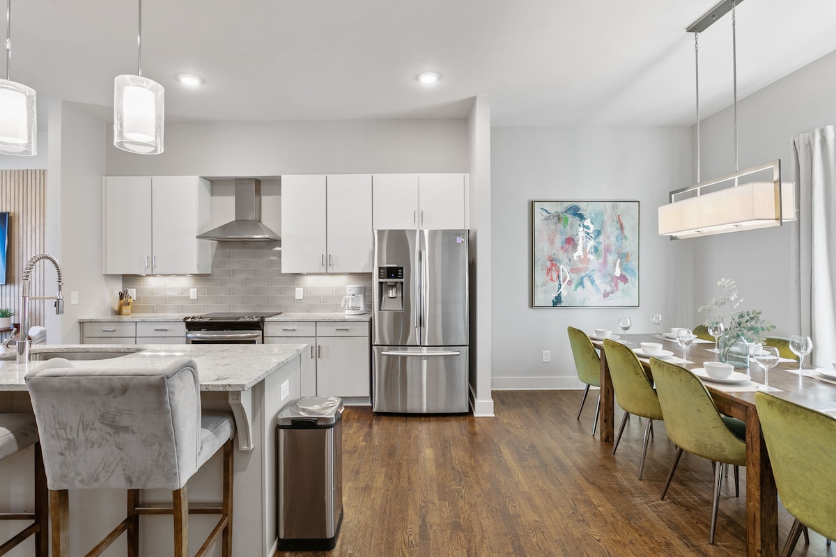 A top🥇AirBNB in the historic district of downtown Franklin. • Located 1 mile from Historic Downtown Franklin • Family gathering space in the living room • Fast 230 Mbps Wi-Fi speed for work and streaming • On-site parking available (Free). • Fully equipped kitchen with all essentials provided This townhome is a peaceful retreat for your visit to Franklin, Tennessee. A well-appointed, clean and fresh space with hardwood floors throughout. See the reviews to discover why guests love it!