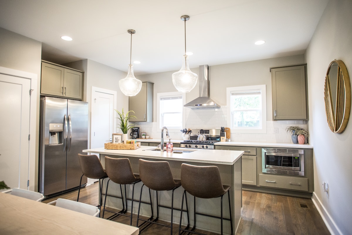 🍹豪华+波西米亚风格新房源,步行可至Gulch,加大双人床套房,市中心景观,篝火,2车位车库👩‍👩‍👧‍👦
