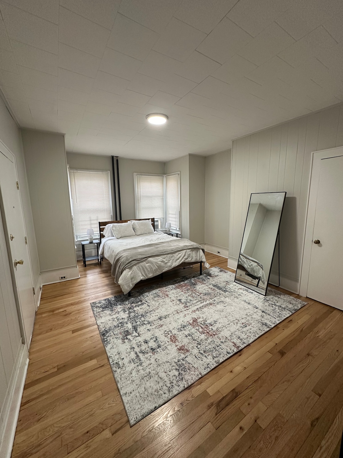 This meticulously curated Japandi-inspired studio is perfect for remote work or a peaceful retreat. The space features a cozy queen bed, small loveseat, and seating area. Enjoy high-speed internet, TV, and a writing desk for productivity. The suite includes a kitchenette with a fridge, microwave, and coffee maker. Located in a quiet, safe neighborhood, with access to a backyard fire pit for relaxation. Ideal for a calm, comfortable, and productive stay.