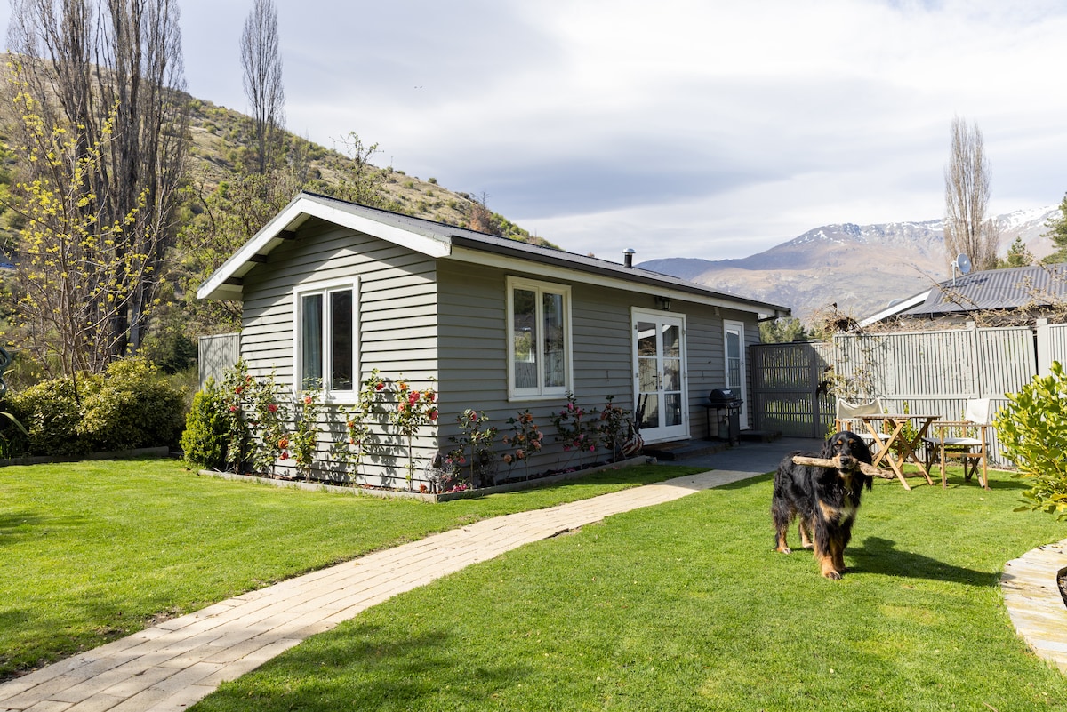 Two bedroom cottage adjacent to the main house with views to Coronet Peak. Kitchenette with Kettle, Fridge, Toaster and Microwave. (No Oven) Living room with beautiful view over the mountains. Smart TV Heatpump and writing desk. Two Bedrooms. Two Queen beds. Bathroom with Steam shower. Located 1km from the Shotover Gorge Bike Trail. E-bike charging/storage available
