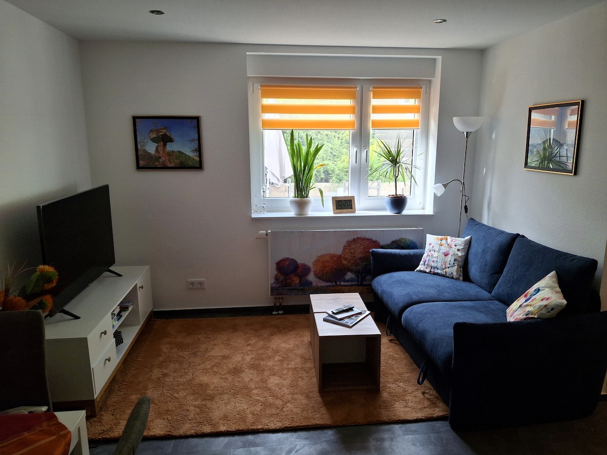 In unserer Ferienwohnung mit 40 qm Wohnfläche im Souterrain finden Sie alles, damit Sie sich rund herum wohlfühlen können. Die moderne, hochwertige Ausstattung von Wohnraum und Bad laden zu Entspannung in kuscheliger Atmosphäre ein. In der Küche mit gemütlichem Essbereich finden Sie alles, was Sie zum Kochen und genussvollen Essen benötigen. Das gemütliche Wohnzimmer ist neben einem bequemen Sofa mit einem Fernseher ausgestattet. Das moderne Tageslichtbad ist mit WC und Dusche ausgestattet.
