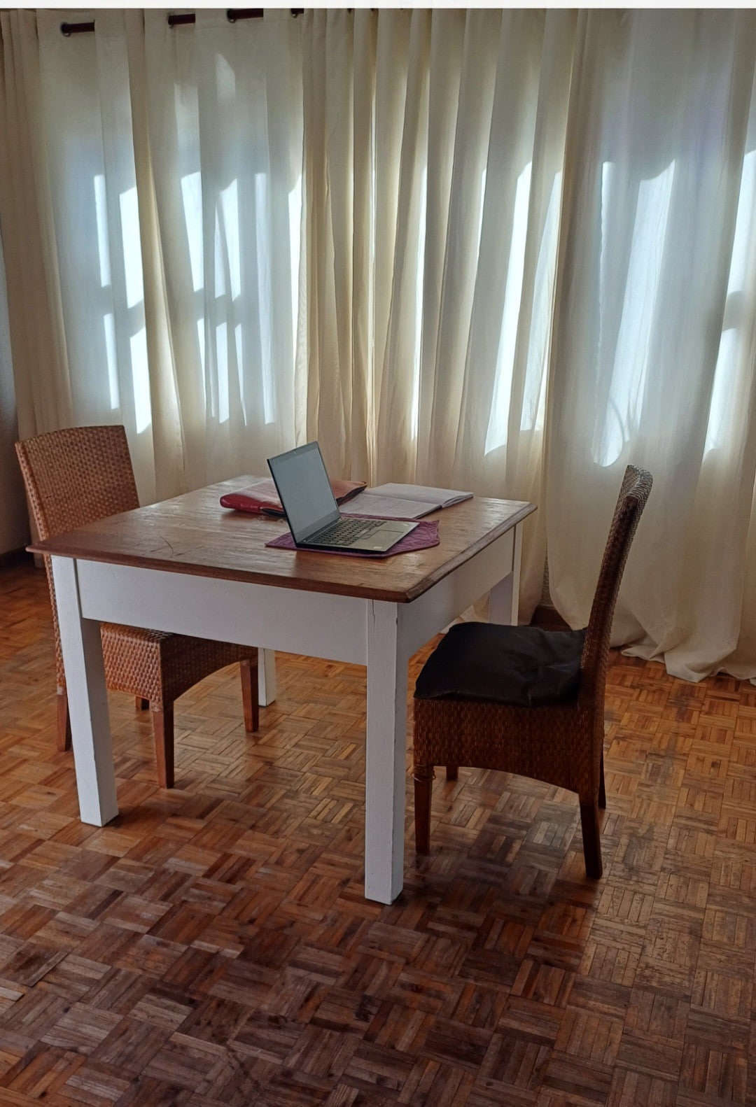 Big 63 m2 beautifully furnished private apartment. Private entrance. Free uncapped FAST fibre wi-fi. Safe parking behind electric gates. 4K DSTV package on flatscreen TV with soundbar.Experience CT like it is home away from home. Entire upstairs apartment, complete with Queen size extra length bed in bedroom (with air con), bathroom, dining room with eight seater table kitchenette and living room (with air con) , own fire place as well as large balcony with view