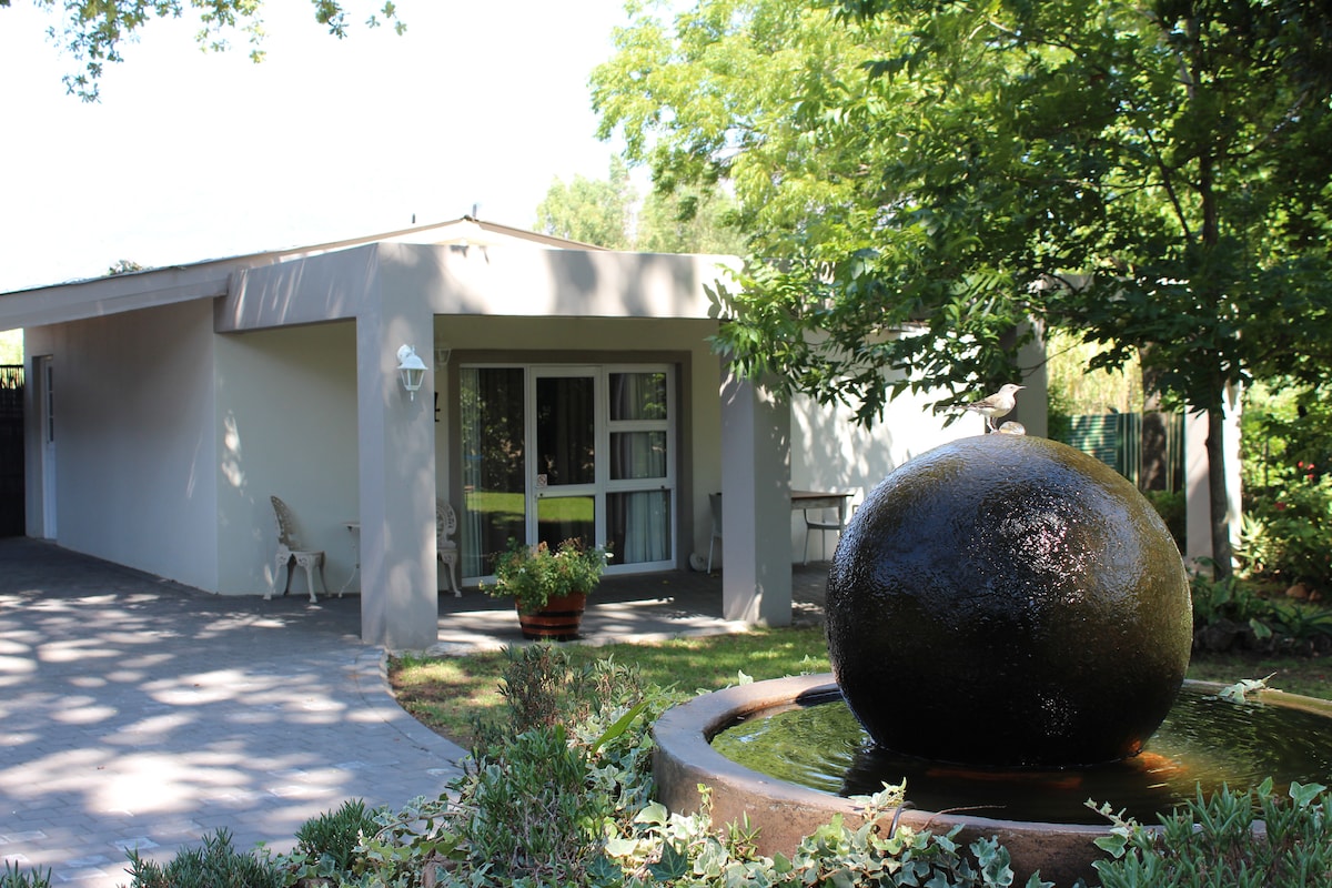 Quiet, safe and comfortable Room En-suite bathroom with shower and bath Kitchenette Private entrance Own security/alarm On-site parking Breakfast included. Large pool and serene garden available for use by guests Approximately 1.5 kilometres from the centre of town with many restaurants Approximately 2.4 kilometres from Stellenbosch University Campus Uber readily available Hosts available for local travel, entertainment and tourist guidance