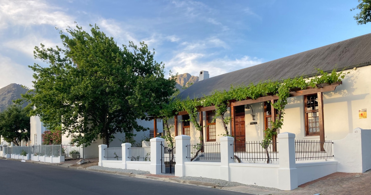 Greet the day with breakfast before marvelous mountains and countryside views from the sunny balcony. From its vaulted, wood-beam ceilings and country-chic decoration, to its brick-fronted fireplace, this placid hideaway glows with idyllic charm. Set on 2 hectares of beautiful gardens, with fruit trees, vineyards & surrounded by mountains. Sip a glass of chilled wine and enjoy the beautiful sunsets from the large balcony with one of the best views! Cool off in the dipping pool and relax in the tree shaded pool area or on those wet winter days curl up next to the indoor fireplace. Property is gated, guest have there own access and free to roam the property. We like to give guest there own space, however either myself or a staff member are always available and happy to help. Nestled between towering mountainscapes and enduring vineyards, this property is situated in Franschhoek, a town known for its world-class dining, wine tasting, and natural beauty. Visit the Huguenot Memorial Museum to learn about local history. Uber is recently available in Franschhoek but does have a limited presence (after 11pm/12pm). There is also a tuk tuk taxi available, please view enclosed information for contact. Please note there is a friendly young rescue dog that roams freely on the property. Nestled between towering mountainscapes and enduring vineyards, this property is situated in Franschhoek, a town known for its world-class dining, wine tasting, and natural beauty.